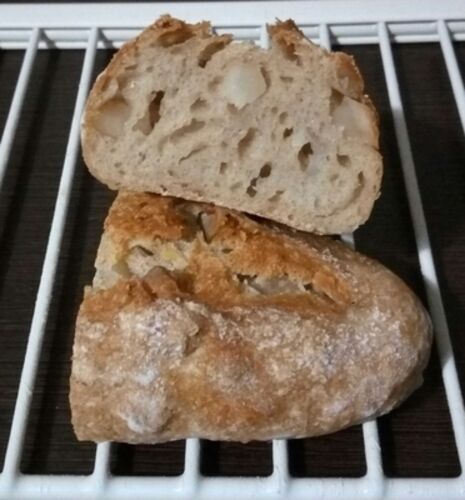 ソフト生地のクルミパンを焼きました。 クルミを混ぜこむパンは、生地の色が紫色ぐらいになるまでしっかり捏ねた方が生地にクルミのコクや渋味が入って美味しいです。 クラムが紫に色づくのはクルミに含まれるタンニンの成分によるものです。このパンは同じ…